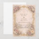 This luxurious wedding design features a soft antique ivory background framed by romantic blush roses, delicate greenery, and ornate baroque gold detailing. Inspired by classic European elegance, the composition feels refined, timeless, and opulent, with flowing florals and sculpted gold accents that create a graceful, romantic atmosphere. Perfect for couples drawn to vintage charm, old-world luxury, and an elevated, elegant wedding aesthetic.
