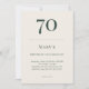 Deep forest green and linen cream birthday invitation featuring classic minimalist typography. Designed for a refined 70th celebration with customizable name age date time location and RSVP details.