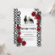 Capture the timeless spirit of the "Run for the Roses" with this striking blend of classic Americana and high-contrast elegance. This Kentucky Derby invitation features a crisp white background framed by bold black-and-white checkered borders—a nod to racing flags and equestrian heritage. The centerpiece showcases a dynamic trio of horses (black and white) galloping in unison, surrounded by lush, deep red roses that symbolize the race's iconic floral tradition.