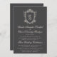 Convite Classic Monogram Charcoal Floral Crest Wedding