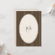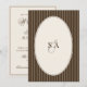 The front of the invitation features a rich chocolate brown background accented with crisp vertical pinstripes, creating a tailored, old-world look reminiscent of fine menswear and vintage correspondence. At the center, an elegant oval frame highlights a personalized monogram, offering a refined focal point that feels heirloom-worthy and intentional.