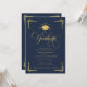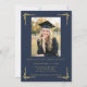 Convite Classic Navy Blue Gold Photo Graduation