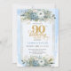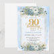 Convite Classic pastel blue gold script 90th birthday