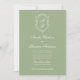 Convite Classic Sage Green & White Monogram Crest Wedding