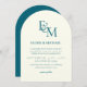 Convite Classic Teal Blue Monogram Minimalist Wedding