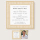 Anuncie seu próximo evento com esses convites de festas na moda! A tipografia clássica e uma fronteira chave grega conferem elegância ao eterno para a sua celebração. Inspirada pela antiga arte grega e romana, a design geométrica cria um padrão decorativo como labirinto. Personalize o modelo com uma foto favorita, seu nome, ocasião, local, data e informações de RSVP. Perfeito para uma festa, almoço formal, brunch, janta, aniversário, aniversário ou outra ocasião. Cores: ouro e branco, com cinza escura. Disponível como convite impresso ou download digital.