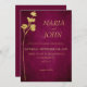 Um convite romântico de casamento em burgundy e ouro - perfeito para casais que valorizam elegância e estilo refinado. A design minimalista com motivos botânicos combina com cerimônias modernas e clássicas. Uma escolha excelente para qualquer estação, especialmente primavera e verão. Na moda, porém simples, é ideal para casamentos num orçamento. Este convite prova que a beleza está nos detalhes.