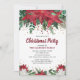 Convide amigos e família para celebrar a temporada de festas com vocês com este clássico convite de festas de natal tradicional. Apresentando um fundo branco, decorado com flores vermelhas ponsietta, folhagem botânica verde-escura e confete de brilho dourado. O modelo elegante pode ser facilmente personalizado usando o modelo fornecido.