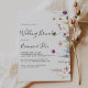 Este clássico convite para o brunch floral clássico de outono é perfeito para um evento moderno. A design apresenta flores silvestres brancas, amarelas, roxas e brancas com folhagem em fundo de rosa e aquarela verde.