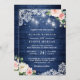 Convite Clássico Azul String Luzes Florais Casamento Russo