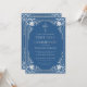 Este elegante convite à primeira comunhão, azul e prateado, com ar vintage, recomendado para um garoto, tem um ornamentado falso de folha de alumínio prateado com decorações elegantes de cinzas prateadas barrocas, enfeitadas em um fundo azul clássico. Acima do texto, há uma cruz religiosa em folha de prata falsa. Exceto a ocasião "Primeira Comunhão", que também está em prata falsa, todo texto pode ser personalizado e tem uma cor de cinza de prata parecida com a falso quadro prateado. A vintage, falso quadro prateado ornamentado é baseada em um antigo enlace francês de cobrir de livros, de Georges Mercier (1885-1939) - Madame de Maupin por Teophile Gautier, edição 1911, agora no dominio público.