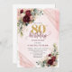 Convite Clássico Boho Merlot Flores Douradas 80º Aniversár