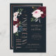 Convite Clássico Borgonha e Florais de Aquarela de Marinho