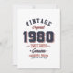 Convite Clássico de 1980 Nascido em 1980 Presente de Anive