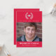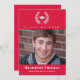 Um convite para fotos de formatura, com vermelho e branco, Um formando clássico, com a aula do seu ano e segundo grau ou faculdade, com as cores da sua escola, um convite para festas simples e formando, com o prêmio tradicional de folha de louros