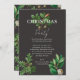 Um simples e na moda moderno carvão negro de Natal preto em bolota convite de festas de Natal botânico. Um design de Natal festivo perfeito para a época de Natal. Convide seus convidados para a sua festa de Natal com este Xmas contemporâneo em um convite de festas de Natal botânico. Simplesmente personalize a festa negra de Natal, convide com seus detalhes e torne-a sua!