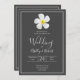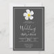 Um simples design moderno com uma flor simbólica, tipo de escrita branca e um contorno branco sobre cinzas escuras. O fundo tem todos os detalhes do casamento, personalize a frente e volte aos detalhes do seu dia especial. Uma procura clássica por um caso formal. Estilo correspondente no Chá de panela, RSVP, Salvar a Data e muito mais. A flor da Lei Havaiana, Plumeria, é um símbolo de "novos começos".