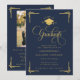 Celebre um notável marco acadêmico com este convite de formatura clássico em azul-marinho e dourado, projetado com elegância atemporal e sofisticação formal. Com tipografia dourada ornamentada, detalhes decorativos nos cantos e um emblema de gorro de formatura, este convite causa um impacto marcante para um graduado do ensino médio ou superior.