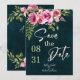 Clássico convite de casamento tema sombrio de conto de fadas escuro rústico floral com rosas verde esmeralda, vinho e rosa beije - Cartão Save the Date