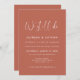 Uma tipografia moderna e uma trendy terracotta, uma paleta colorida de argila e pêssego para sua papelaria de casamento: escolha esta suíte de casamento simples e elegante. Totalmente personalizável: você pode alterar o plano de fundo e a cor do texto conforme desejar.