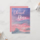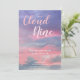 These baby girl shower Invitations feature a We're on Cloud Nine design theme. Pink, purple blue ethereal watercolor sky with color typography. Image copyright Marg Seregelyi Photography.