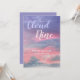 These gender neutral baby shower Invitations feature a We're on Cloud Nine design theme. Purple, pink, blue ethereal watercolor sky with color typography. Image copyright Marg Seregelyi Photography.
