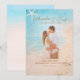 Create a beautifully cohesive wedding suite with this soft beach-inspired invitation back design. Featuring serene turquoise water blending into warm sandy tones, this elegant coastal backdrop is finished with delicate starfish and seashell accents for a romantic seaside touch.