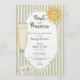 This whimsical coastal petals and prosecco bridal shower invitation features a vintage sun motif, lace border, palm trees, and stylish sage green stripe background. Perfect for a beach or California destination wedding theme event. Created by Simply Farmhouse Press.