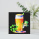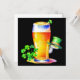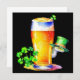 Todos os cobras que deixaram a Irlanda bebem nos bares da Inglaterra nas Ruas. Aquarela com uma grande cerveja e camarões e um cobra num chapéu verde a espreitar por detrás da cerveja.