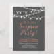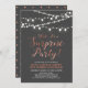 Celebre seu dia especial com este convite de festa de aniversário surpresa elegante! Este design apresenta uma tipografia de roteiro elegante e cordas de luzes em um fundo cinza escuro. Perfeito para uma festa no jardim, festa no celeiro ou qualquer festa surpresa.