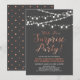 Celebre seu dia especial com este convite de festa de aniversário surpresa elegante! Este design apresenta uma tipografia de script elegante e luzes em uma corda em um fundo cinza escuro. Perfeito para uma festa no jardim, festa no celeiro ou qualquer festa surpresa.