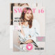 um cobrir de revista divertido Convite para festas de aniversário Sweet 16 , com duas fotos, e ousado tipo rosa e cinza, aqui está a colher, o vamos comemora a aniversariante.