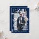 Faça dele a manchete do dia com este convite de aniversário ao estilo do cobrir da revista moderna em azul marinho e prata! Projetado para homens e mulheres, este layout de retrato apresenta espaço para uma foto personalizada, nome, idade e texto ousado no estilo de título. Perfeito para aniversários de marco ou comemorações de na moda. Nota: As cores e os elementos de fundo podem ser personalizados para corresponder ao tema da sua parte.
