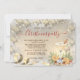 Flocos de neve de ouro elegantes, um copo de champanhe e galhos de pinheiros com laranja sobre fundo de ouro.Estes belos convites de Natal são perfeitos para convites de festas de janto de Natal, convites para troca de presentes de Natal, angariadores de fundos de Natal, convites para bolas de Natal e outros eventos realizados durante o mês de dezembro. Use apenas os campos modelo para adicionar suas próprias informações de evento.G