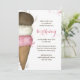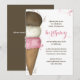 Este design apresenta um giro aniversário de sorvete de aquarela, um roteiro de caligrafia na moda, uma comemoração branca festiva divertida, um URL online de código QR, um cone de waffle de sorvete, um design mínimo minimalista simples, um aniversário de verão celebra uma festa, um chocolate branco rosa, um cone de sorvete de sabor napolitano, um divertido e único convite de aniversário, um sorvete temático convites