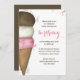 Este design apresenta um giro aniversário de sorvete de aquarela, um roteiro de caligrafia na moda, uma comemoração branca festiva divertida, um URL online de código QR, um cone de waffle de sorvete, um design mínimo minimalista simples, um aniversário de verão celebra uma festa, um chocolate branco rosa, um cone de sorvete de sabor napolitano, um divertido e único convite de aniversário, um sorvete temático convites