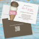 Esta design apresenta um sorvete de aquarelas bonitinho social, um roteiro de caligrafia na moda, um site de código QR online, uma divertida celebração caprichosa, um cone de waffle do sorvete, um design minimalista simples, uma igreja escolar se reunindo, um chocolate branco rosa, um cone de sorvete de sabor napolitano, convites para eventos de organização brancos