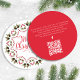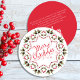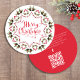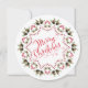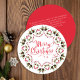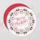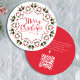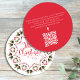 Esta design apresenta um convite de festas giro de Feliz Natal com uma letra de escrita de caligrafia na moda, um link de URL do site de código QR, letras de tipografia vermelha e verde, pinecones greenery foliage Foliage Folhas Folha Folha, groselhas holly simples botânicas, um padrão design minimalista simples, uma espiral irrisória de rico clássica, com informações detalhadas de digitalização