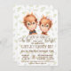 O gênero macaco revela convites com adoráveis cores aquáticas, o bebê e a menina, macacos orangotango, num fundo de folha verde. Esses gêneros macacos revelam convites facilmente personalizados para seu evento simplesmente adicionando seus detalhes. Você também pode mover ou remover a gravata do arco.