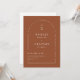 Este elegante convite de casamento minimalista apresenta um monograma limpo e sofisticado das iniciais do casal no topo, seguido de tipografia serif eterno para os nomes e detalhes do casamento num fundo de terracota. A frente é enquadrada por linhas geométricas sutis, adicionando um toque formal ao design. Na parte de trás, uma foto do casal feliz é colocada em forma de arco circular, com um código QR personalizável abaixo, permitindo que os hóspedes RSVP facilmente. Tente se tornar ecológico com este convite moderno, tudo em um, ecológico, reduzindo o RSVP adicional e os cartões de detalhes. Basta adicionar seu próprio código QR à parte traseira do convite para seus convidados para RSVP e descobrir mais informações sobre seu casamento. Personalize os nomes e o texto em apenas alguns passos fáceis e personalize o cartão de convite com sua foto do casal feliz para lhe dar um toque exclusivo e pessoal. Por favor note: as frases do texto "gentilmente juntem-se a nós para celebrar o casamento de", "recepção a seguir" e "gentilmente responder por" no verso, juntamente com as linhas e o trabalho de arte de elementos gráficos, não podem ser editados, excluídos, movidos ou alterados. Eles estão consertados. Se precisar alterar a cor, você pode personalizar o cartão de convite. Você pode personalizar facilmente este convite com seu próprio texto e compartilhá-lo digitalmente através de texto, email ou mídia social. Como alternativa, você pode enviar uma versão impressa para seus convidados ou fazer ambos — enviar uma versão digital e acompanhar uma cópia impressa para obter uma experiência mais personalizada.