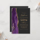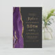 A borda esquerda deste convite de festa de 50º aniversário moderno e elegante apresenta uma borda de ágata em aquarela roxa aparada com brilho falso dourado. O texto personalizável combina escrita à mão em cor dourada, fontes copperplate e itálico em um fundo preto ardósia. Adicione instruções de RSVP no verso do cartão, junto com um código QR que os convidados podem escanear para responder online.