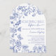 A elegância do eterno encontra a sofisticação moderna com este chá de panela "Algo Azul Antes de Eu Fazer". Apresentando um delicado motif floral e borboleta inspirado em toile em tinta azul nítida, este design define o tom perfeito para uma celebração refinada e na moda. Quer você esteja hospedando uma reunião íntima de jardim ou um caso elegante de adega, este convite fala para aqueles que apreciam detalhes ponderados e encanto sem esforço. Procurando uma suíte coordenada? Procure designs, variações de cor ou elementos personalizados correspondentes para criar uma estética de evento coesa. Copyright Anastasia Surridge, todos os direitos reservados.