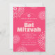 Sinta-se orgulhosa, regozije e exiba esse marco da sua Bat Mitzvah favorita com esse convite de código QR personalizado, divertido e moderno! Explosões de flores em branco retrô pop e rosa velho com estrelas de David, juntamente com uma tipografia moderna em rosa velho e branco sem serifa, sobrepõem um fundo rosa coral brilhante. No verso, a foto de sua escolha, uma explosão de flores rosa quente e um código QR escaneável para mais informações sobrepõem o branco. Personalize o texto personalizado com o nome da sua Bat Mitzvah, data, informações do local, URL do site e foto. Garantido para adicionar diversão estilosa à sua ocasião especial!