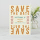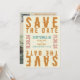 Imprima seus convidados de casamento com esta diversão e ousado personalização total Salve a data com o código QR! O sudoeste inspirou uma tipografia ousada em ouro retrô, azul e rosa são o sotaque perfeito para sua própria foto ou foto no verso. Você pode personalizar todo o texto e cores para corresponder ao seu próprio evento! Perfeito para um casamento ocidental, de praia, moderno, vintage ou de destino - este único Salve a Data é versátil! Não se esqueça de carregar sua própria foto e URL do código QR!
