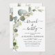 Brunch e Bubble Eucalyptus Greenery Succulent Botanical Watercolor Emerald Green Spring Wedding Code Invtions em fundo branco - inclui uma bela e elegante tipografia de roteiro com folhas botânicas modernas e verde para a festa especial Bride Be.