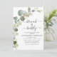 Brunch e Bubble Eucalyptus Greenery Succulent Botanical Watercolor Emerald Green Spring Wedding Photo e QR Code Invtions em fundo branco - inclui uma bela e elegante tipografia de roteiro com folhas botânicas modernas e verde para a celebração especial Bride Be.