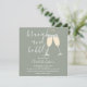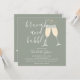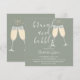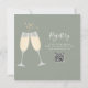 Um convite elegante de brunch e bubbly para chá de noiva com taças de champanhe e nome em letra cursiva, este convite sofisticado pode ser personalizado com suas informações em letras elegantes sobre um fundo verde sálvia. Com o código QR do seu registro no verso. Criado por Thisisnotme©