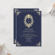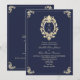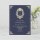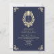 Eleve a papelaria do seu casamento com este elegante convite de casamento barroco em azul naval e dourado. Com um monograma dourado luxuoso na frente e um código QR escaneável no verso, torna o RSVP e o acesso ao site do casamento simples para os seus convidados. Perfeito para casais que desejam um design de convite atemporal e moderno, este modelo 5x7 inclui floreios ornamentais vintage e tipografia sofisticada. Papelaria de casamento correspondente disponível para completar sua suíte.