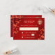 A cereja vermelha floresce num fundo vermelho brilhante e um símbolo de felicidade dupla dourada. Cartão de Casamento Chinês RSVP. Na parte de trás está um código qr digitalizável para o seu site de casamento.