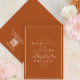 Um convite formal clássico de casamento Burnt Orange, com caligrafia de script. Perfeito para a noiva moderna ter um caso formal. Economize o custo no papel de carta do gabinete com nosso Código QR incluído na parte traseira do convite para detalhes de RSVP e Casamento. Consulte a coleção de cheios aqui: https://www.zazzle.com/collections/elegant_burnt_orange_classic_script_wedding-119586740302574987 Copyright Anastasia Surridge for Elegant Invites, todos os direitos reservados.